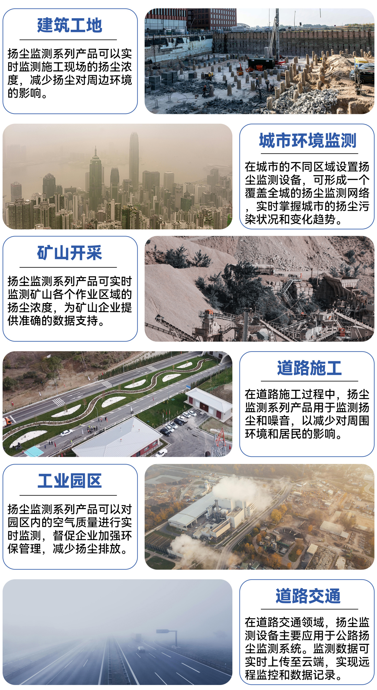 建筑工地上的机械轰鸣、物料堆场的风起尘扬、城市道路的车辆穿梭,这些日常场景中潜藏的扬尘污染,正悄然影响着空气质量与生活健康。 清易电子深耕环境监测领域,推出QY-3000 扬尘监测系列产品以“高精度传感+自动化管理+全场景适配”的优势,为扬尘污染防治提供全链条解决方案,让每一粒粉尘都无处遁形。 ![]() 一、多维监测,数据洞察 作为扬尘监测的核心竞争力,QY-3000系列搭载光散射法高精度传感器,实现颗粒物与环境参数的同步捕捉。从PM2.5到PM10的细微颗粒,再到风速、风向、温湿度、噪声、大气压力等关键要素,均能达到实验室级监测标准——PM2.5精度误差不超过±10%,温度测量精度达±0.2℃,噪声监测覆盖30-130dB全量程。 ![]() ![]() ![]() ![]() 二、自动管控,秒级闭环 1.在数字化治理已成趋势的今天,QY-3000系列构建了从监测到处置的秒级闭环。通过有线与无线网络双保障,数据可实时传输至物联网云平台,支持表格、柱状图、折线图等多形式可视化展示,历史数据存储与导出功能更满足合规溯源需求。 ![]() ![]() ![]() ![]() ![]() 2.当扬尘浓度突破预设阈值,系统即刻启动分级预警机制:现场显示屏同步提醒,管理人员手机端实时接收报警信息,甚至可以联动雾炮自动开启。 ![]() ![]() 三、型号多样,场景适配 QY-3000系列并非“一刀切”的通用设备,而是针对不同场景量身打造四大核心型号: QY-3000G1 24小时在线扬尘监测系统 基础款24小时在线监测系统,配备2米便携支架,适配智慧城市、旅游景区等网格化监测需求,轻松构建多点监测网络; ![]() QY-3000G2 建筑工地扬尘噪声监测系统 建筑工地专属款,搭载室外高清显示屏,准确匹配施工场地、混凝土搅拌站的噪声与扬尘双重监测要求; ![]() QY-3000G3 标准版扬尘监测系统 标准版监测系统,平衡精度与成本,成为物料堆场、工业园区的性价比之选; ![]() QY-3000Z 噪声监测站 噪声监测站,聚焦噪声污染管控,适配交通要道、居民区周边等场景。 ![]() 四、领域广泛,应用展示 ![]() 上一篇: 铁塔自动化监测解决方案